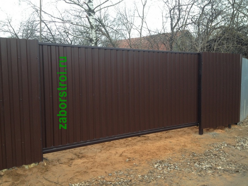 Откатные ворота из профнастила - Пример 8 в Семикараковске