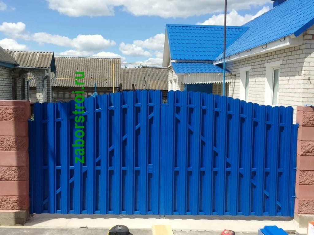Распашные ворота из евроштакетника - Пример 14 в Семикараковске