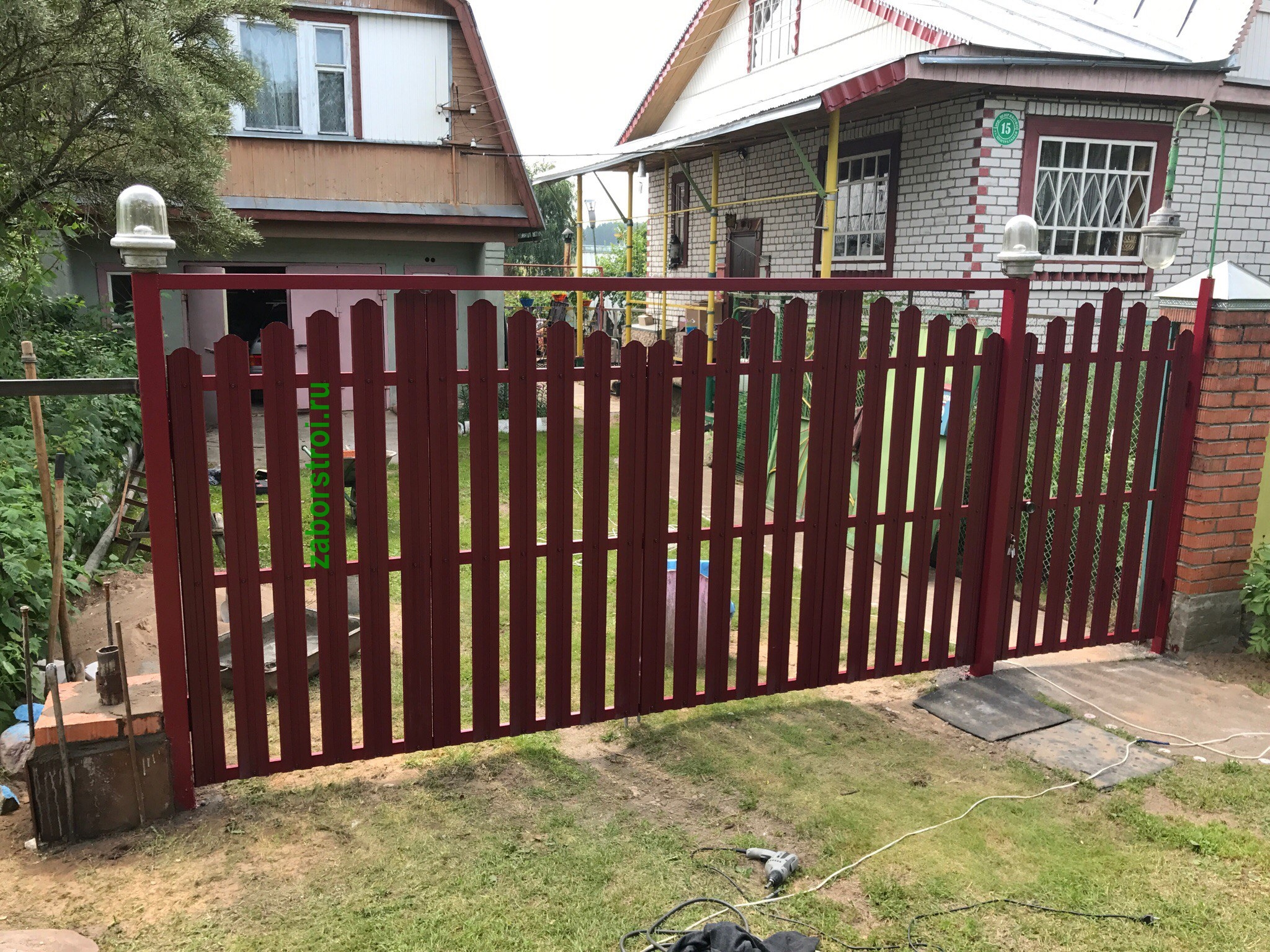 Ворота из евроштакетника распашные