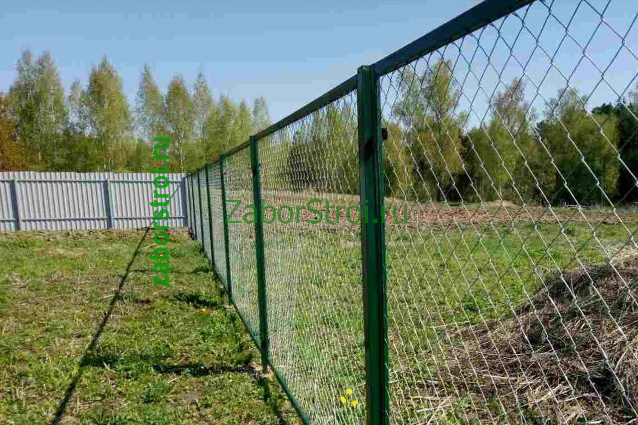 Забор из сетки рабицы в натяг