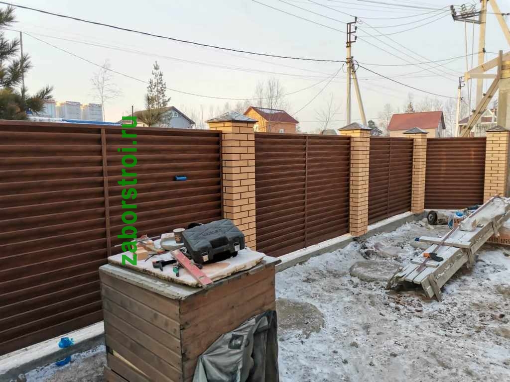 Недавно воспользовался услугами компании, и в целом доволен полученным результатом. Мне нужно было срочно поставить вокруг частного земельного участка забор-профнастил на фундаменте с кирпичными столбами. Могу вас уверить, что даже не ожидал, что работы по установке будут произведены настолько быстро и качественно.